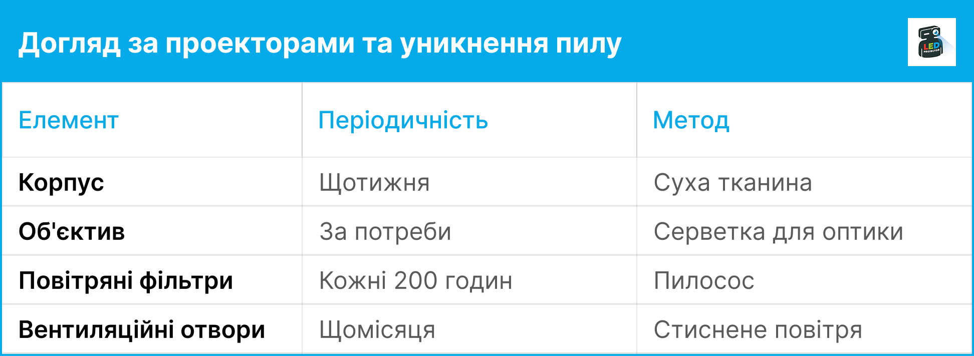 Догляд за проекторами та уникнення пилу